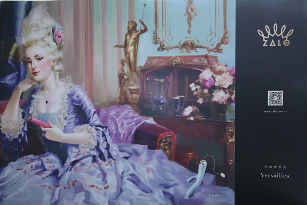 作为情趣行业的小白,今年第一次去参观了业界知名的上海成人展,女优展位被宅男们挤得水泄不通,我也不乐意去凑那个热闹,那就安逸的看产品吧。果然比女优有看头的还是产品呐!很多产品真是让我大开眼界啊,自动炮机,巨大无比的仿真阳具,都是些什么鬼啊,看着都觉得疼啊!有些仿真娃娃倒是做的很精美啊,比真人都好看,价格也是相当的美丽哟。还是入口的处的ZALO合我心水呀,展厅的巨幅海报就是18世纪的贵妇画像,展厅内黑金色调也很宫廷范儿,展台布置陈列也都充满着法式风情。