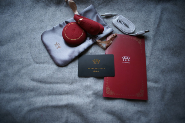 不得不说ZALO这个品牌真的很用心啊,包装的漂亮的不要不要的,简直就是来自凡尔赛的礼物嘛,打开盒子,是一个夹层,上面有产品收纳袋,充电线和说明书,这个上层貌似可以用来放些首饰或者化妆品来做掩护哦。夹层的下面才是产品,这样的包装设计能很好的保护隐私,可以正大光明的摆在梳妆台上而不被家人发现。
