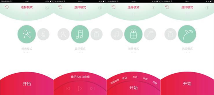 经典模式下有8中震动模式可供调换;音乐模式下,配合你手机里自己喜欢的音乐来玩;场景模式下,可以创建自己喜欢的震动模式,也可以选择 APP有配备的四种模式:摇滚、摩托、浪花、过山车。