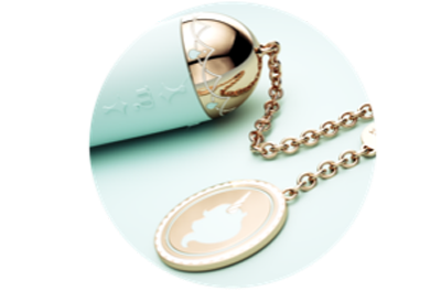 每一个玩具都带一条金色的链子,链子上有精巧的吊坠,这特别像细带的高跟鞋上带着的金色链条,显得女生的脚踝纤细柔美,皇冠部分及吊坠使用珠宝级的全手工珐琅上色,(调情功能的描述)镀18k,采用硅胶体浮雕工艺,可见设计用尽心思呈现少女的美。