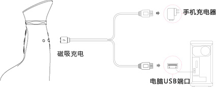 内置锂聚合物电池1000mAh USB磁吸充电,2小时左右即可充满 满电情况下可使用1-2小时 |